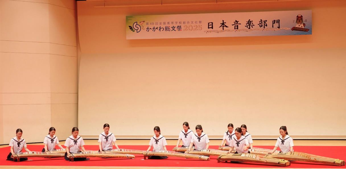 創部して30年以上続いている伝統ある臼杵高校箏曲部は、外部講師の指導の下、現在3年生6名、2年生5名、1年生11名で「全国高等学校総合文化祭出場と上位入賞」を目標に日々練習に励んでいます。(令和7年度全国高等学校総合文化祭日本音楽部門出場 28年連続)