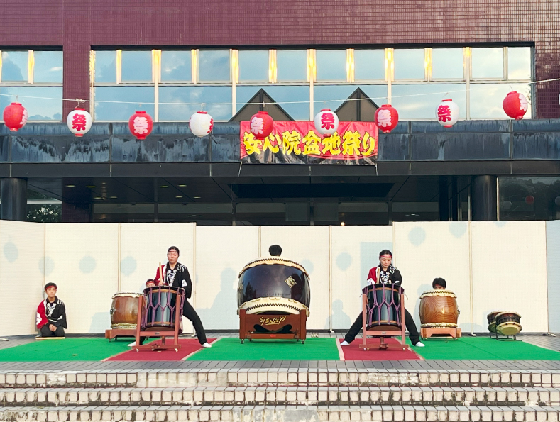安心院高校和太鼓部「和香葉(わかば)」は平成4年に発足し今年で34年目を迎えます。郷土芸能としての和太鼓を大切に受け継ぎながら、地域とのつながりを大切に活動しています。地元の「院内童龍太鼓」のメンバーと、高校で初めて太鼓に触れた生徒たちが共に練習に励み、地域の祭りやイベントなどで演奏を披露しています。こうした活動は、日頃から支えてくださっている地域の皆様への感謝の気持ちを込めた、私たちなりの「恩返し」です。太鼓の音が響くたびに、楽しんでいただけるよう心を込めて演奏しています。また、高校生ならではの感性を生かし、「和香葉」独自の演奏を創り上げようと日々試行錯誤を重ねています。伝統を尊重しながらも、新しい表現に挑戦する、そんな和太鼓を目指しています。